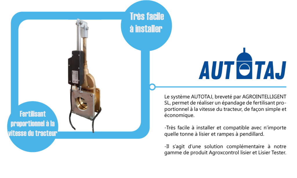 Si vous souhaitez être encore plus précis, vous pouvez associer l’application avec la vanne AUTOTAJ qui vous permettra de moduler de façon automatique la dose de lisier épandue, proportionnellement à la vitesse du tracteur.