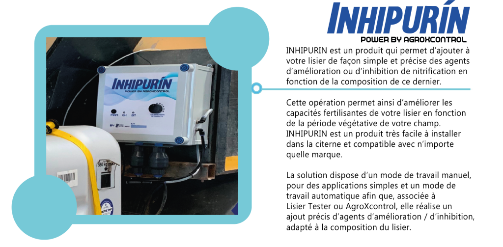 Et si en plus, vous voulez optimiser la capacité fertilisante de votre lisier, vous pouvez aussi associer l’application avec le dispositif ce qui ajoutera pendant le trajet des additifs ou des inhibiteurs de nitrification à votre lisier, vous permettant ainsi de consommer au plus juste ce type de composants et optimiser votre bénéfice.